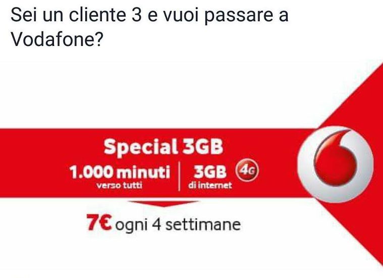 – Vodafone: 1000-3GB a 7 euro, SOLO da H3G
