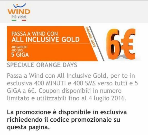 – WIND: 400-400-5GB a 6 euro, SOLO da H3G